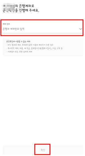 3. 본인계좌확인을 통해 본인인증을 합니다.