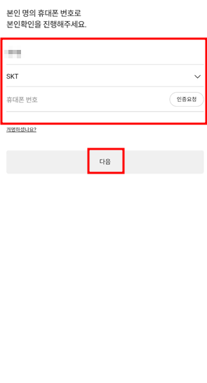 2. 본인확인 약관동의하고, 통신사 인증을 합니다.