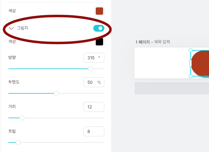 버튼 아래 그림자를 넣고 싶으시다면 '그림자'를 선택하실 수 있습니다. 그런 다음 위에 저장버튼 누르면 작업이 저장되어 다음에 다시 불러 사용하실 수 있습니다. 바로 다운로드하실 거면 다운로드 눌러주세요