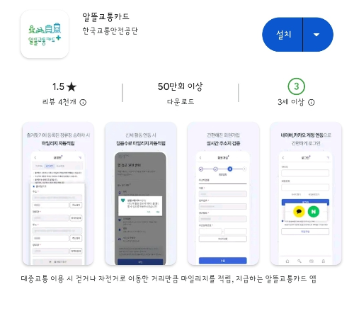 알뜰교통카드 마일리지 적립을 이용하려면 알뜰교통카드 어플을 설치해야 합니다.