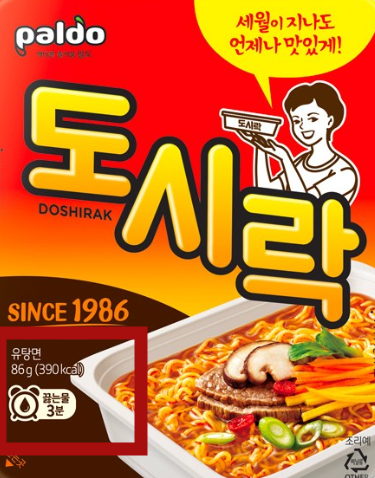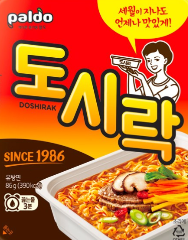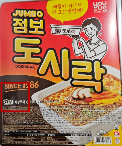 점보도시락 그림에 여성 캐릭터가 무거운지 땀을 뻘뻘 흘리고 있네요. 원래 땀을 흘리고 있는지 궁금해서 찾아봤는데, 일반 도시락 컵라면의 여성은 땀을 흘리고 있지 않습니다. 정말 재미있게 코믹요소도 넣어주었네요.