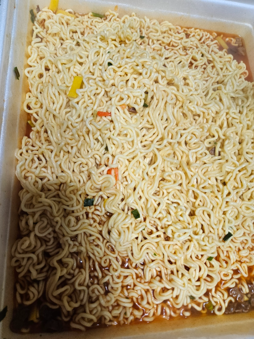 물을 부어준 후, 점보도시락은 5분을 기다려줍니다. 일반 도시락 컵라면은 3분이면 되는데, 2분이 늘어나네요. 면발은 일반 도시락은 얇은 면발 느낌이었는데, 점보도시락은 좀 더 굵은 느낌입니다. 맛도 일반도시락은 고소함이 더 있었던 것 같은데, 점보도시락은 매콤함이 더 추가된 느낌이었습니다.
