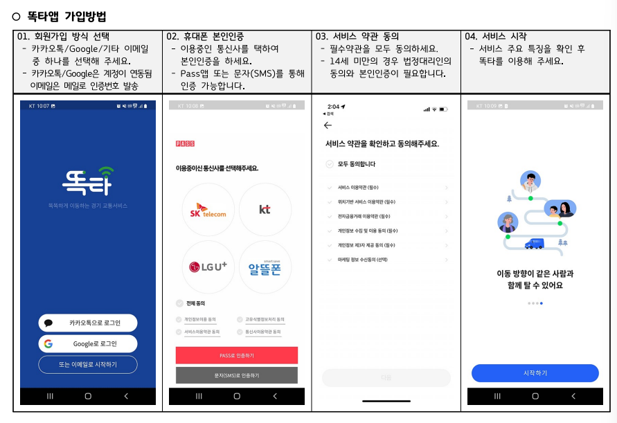 ◈먼저 휴대폰에서 '똑타'앱을 다운로드하여 가입합니다.