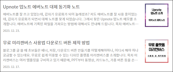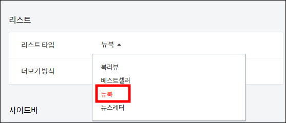 처음 세팅 북리뷰에서 가독성좋은 뉴북리스트로 리스트타입을 변경해 보겠습니다.