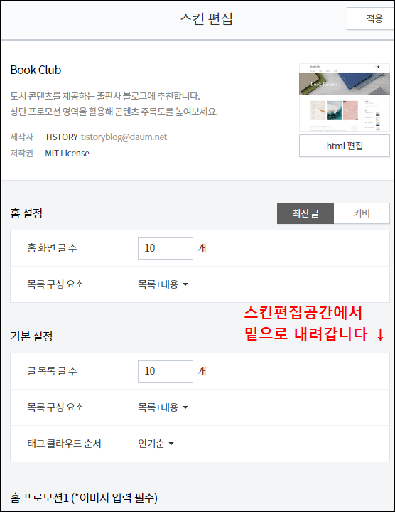 ● 스킨편집창에서 아래로 쭈욱내리면 리스트 타입을 변경하는 곳이 나옵니다.